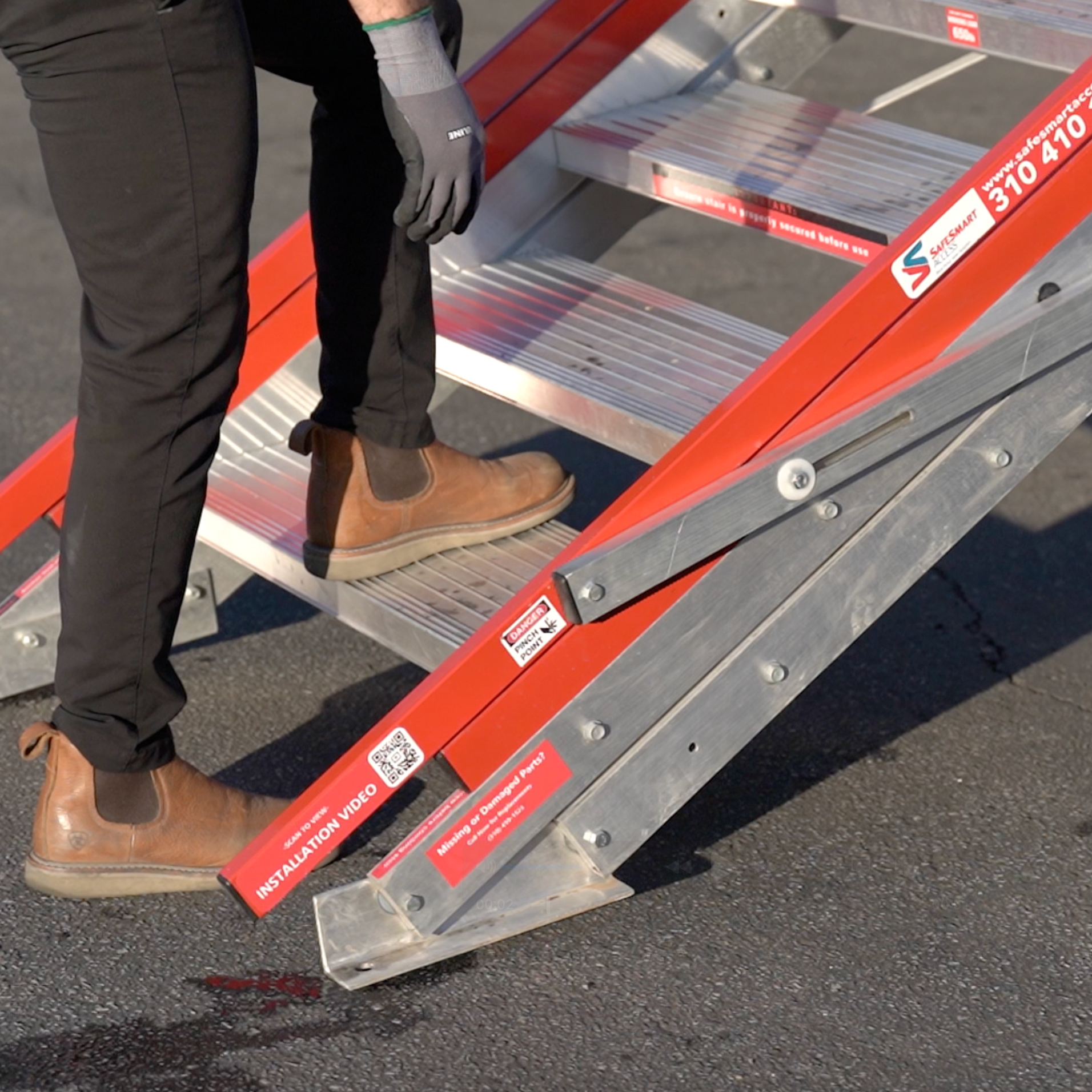 AdjustaStairs installs in minutes, not hours. With a pre-assembled, fold-flat design, two people can deploy the stair in under 10 minutes—no complex setup, no site-built components, and no wasted time getting crews up and moving safely.