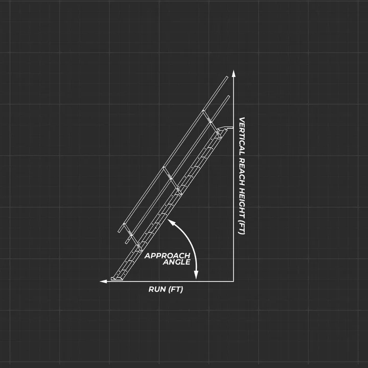 AdjustaStairs™ adjusts based on the relationship between stair length, vertical reach, and approach angle. As the pitch changes,